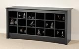 BSS-4824 Features: Dual purpose product 18 individual cubbies Each cubbie measures 6 3/4"(W) x 13 3/4"(D) x 5 1/2"(H) Constructed from high quality laminated composite woods Profiled top, side moldings, and arched kick plate Ready-To-Assemble Assembly required Finish: Black Dimensions: 48"(W) x 16"(D) x 24"(H) Read more