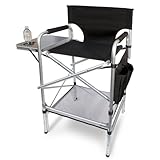 WORLD CLASS Tall Heavy Duty Folding Directors Chair with Side Table, Cup Holder, Side Storage Bag and a ROLL of HOLIDAY GIFT WRAPPING PAPER