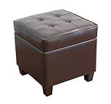 Faux Leather Tufted Square Storage Ottoman in Brown